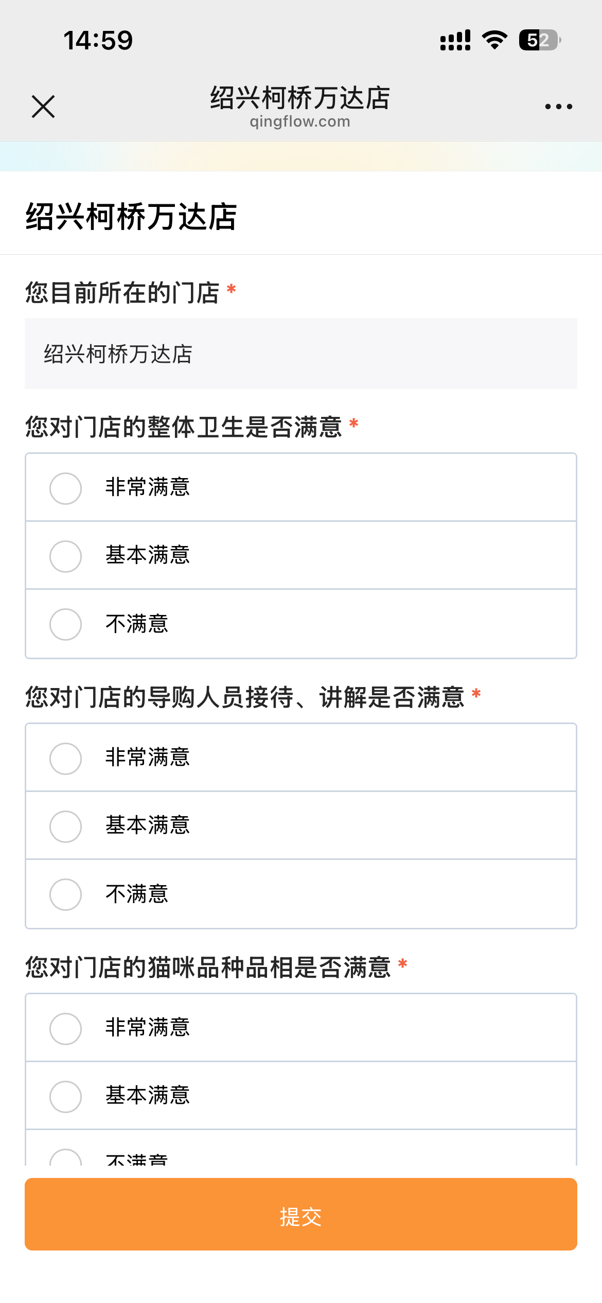 1.店面环境:门店卫生状况、空间布局、宠物展示区舒适度等